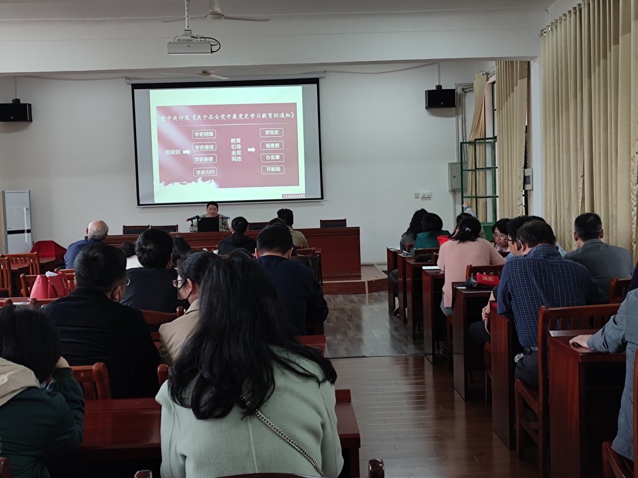 毕老师首先阐明了党史学习的目的和任务:学党史、悟思想、办实事、开新局,就要汲取继续前进的智慧和力量,深入学习贯彻习近平新时代中国特色社会主义思想,巩固深化“不忘初心、牢记使命”主题教育成果,激励全党全国各族人民满怀信心迈进全面建设社会主义现代化国家新征程。然后,毕老师从天动地裂——山河破碎与志士逐梦、开天辟地——党的成立与“民族独立解放”之梦、改天换地和翻天覆地——党的探索与“民族富裕幸福”之梦、惊天动地——党的新征程与“民族富强复兴”之梦、顶天立地——百年逐梦与经验启示等五个部分讲述了中国近代以来170多年的斗争史、我们党100年的奋斗史、新中国70年的发展史。宣讲中,毕老师旁征博引、声情并茂,他建议党员同志要学习思想伟力、历史规律、党的性质和宗旨、历史经验、革命精神、党的团结和集中统一,引导大家要认真研读原文原著、树立正确的党史观,在学懂弄通做实上下功夫,激励听讲的党员在新起点、新征程中把握历史使命,勇于担当、善于作为,为乘势而上、书写践行新时代中国特色社会主义的新篇章贡献力量。