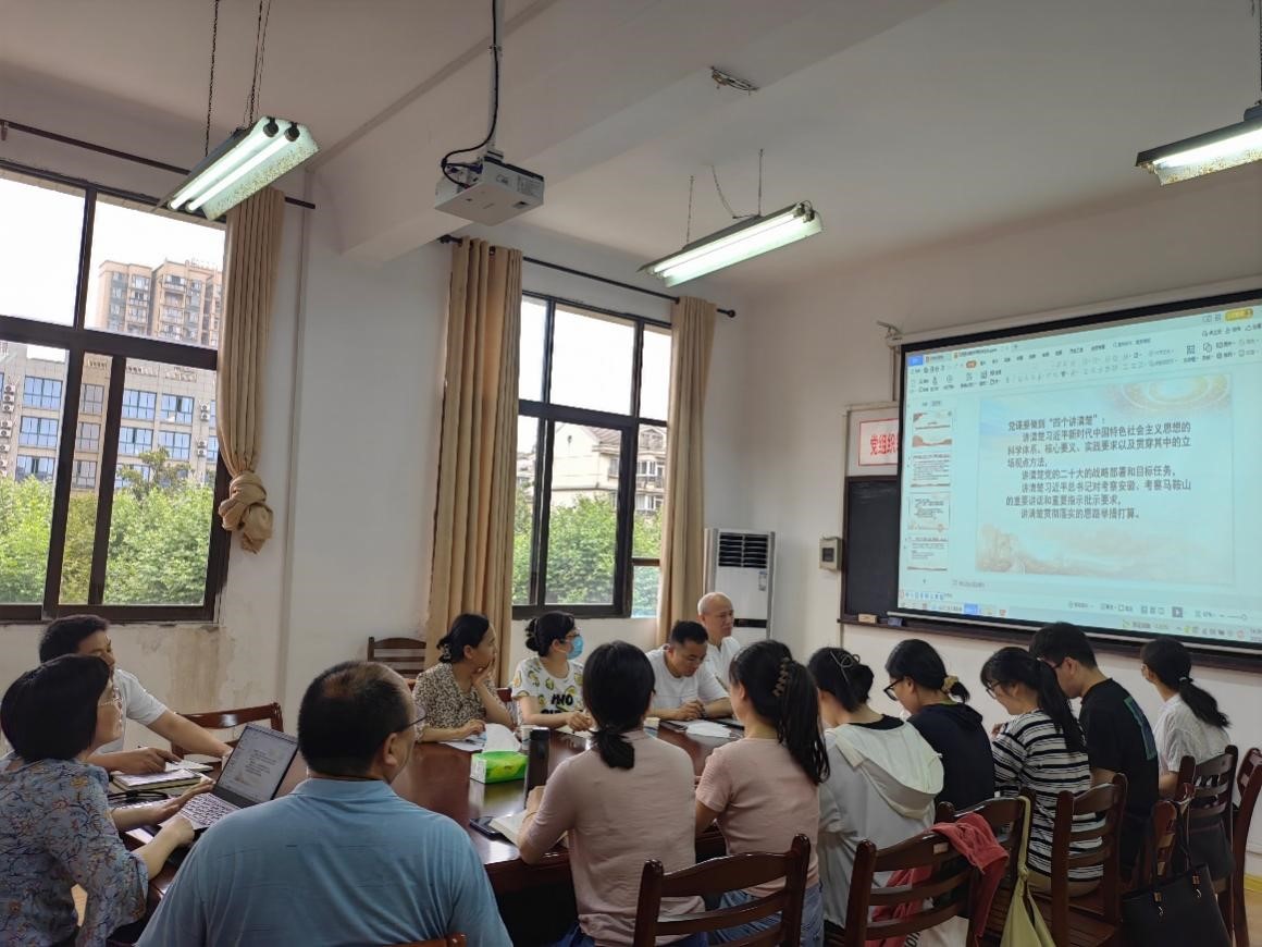 此次专题党课主要围绕“四个讲清楚”,首先是讲清楚习近平新时代中国特色社会主义思想的科学体系、核心要义、实践要求以及贯穿其中的立场观点方法,宫晓虹重点讲授了习近平新时代中国特色社会主义思想的世界观和方法论。其次是讲清楚党的二十大的战略部署和目标任务,重点解读了党的二十大报告中将教育、科技、人才三位一体作为一个部分独立成篇。再次是讲清楚习近平总书记对考察安徽、考察马鞍山的重要讲话和重要指示批示要求。最后结合本支部党员教师的教学和科研,探讨了贯彻落实的思路举措和打算,支部党员教师重点就“如何提高思政课教学的吸引力和亲和力”做了充分的沟通和交流,贡献了各自的教学智慧和经验。