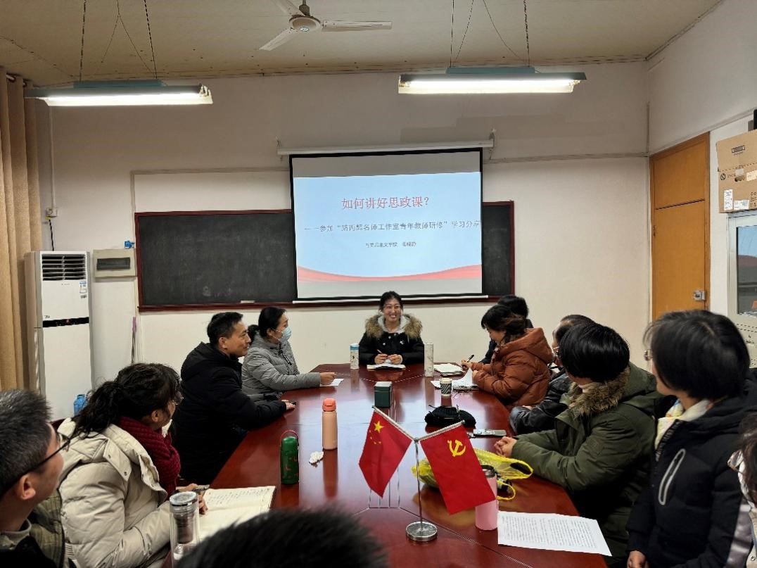 第二阶段由姜晓静和程权杰两位教师分别围绕教学和科研进行重点发言。姜晓静老师结合前段时间参加“路丙辉名师工作室青年教师研修班”学习体会以及自身教学的实际情况,谈到思政课教师尤其是青年思政课教师要站稳讲台、守牢阵地,必须在“备课”“讲课”“养课”上下足硬功夫、练就真本领,积极践行习近平总书记的“六要”指示,做学生喜爱的新时代思政课教师。程权杰老师认为,做科研的过程是苦乐交织的过程。在文献阅读、论文构思以及论文修改等过程中,都需要坐冷板凳、下真功夫。同时,他认为做好科研,要做到“五多”,即多看、多思、多写、多论、多改。与会教师纷纷表示,教学与科研并非“鱼和熊掌”的关系,要通过恰当的方式,实现教学促进科研、科研反哺教学,最终推动二者协同发展,科教融合育人。