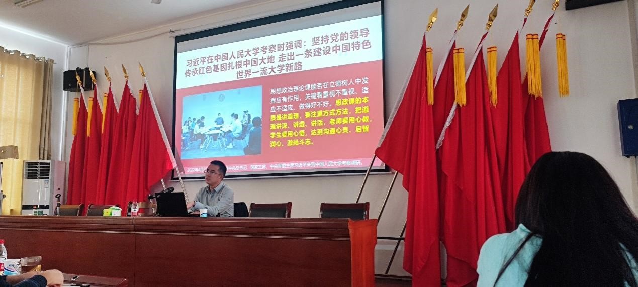 报告会上,王磊教授首先阐释了习近平总书记关于思政课建设的重要论述的深刻内涵,探讨了“思政课有着什么样的重要地位”“一堂思政课的理想状态应该怎么样”和“教师在思政课中如何发挥好关键作用”等重要问题。结合自身学业和职业发展等成长经历,解读了作为思政课教师,该如何去艰辛付出并达到收获满满。他以参加教学竞赛为例,讲述了如何完成从 “运动员”到“教练员”再蜕变成“裁判员”的亲身经历,强调了“以赛促教”的重要性,鼓励青年教师应勇于挑战和敢于创新。