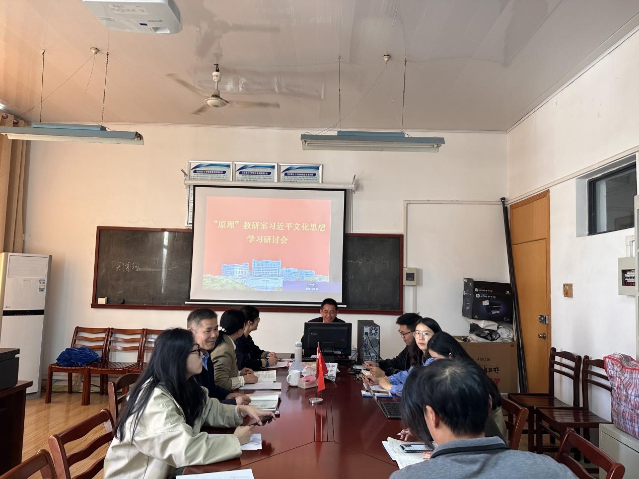 原理”教研室开展了习近平文化思想融入《原理》课程专题研讨,“原理”教研室全体教师参加,会议由教研室许屹山主任主持。
