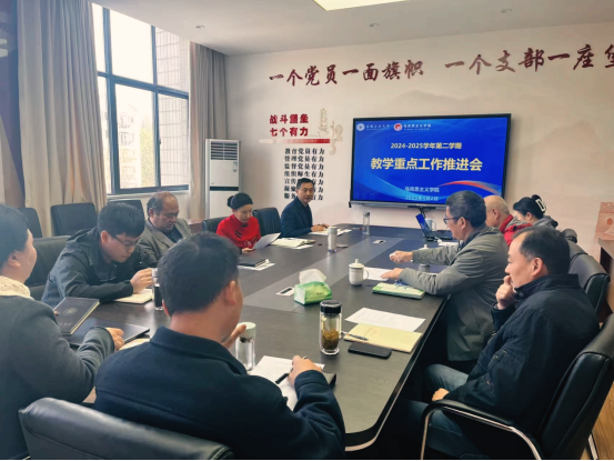 2025年春季学期教学重点工作推进会在324会议室召开。会议由副院长林忠心主持,院长郑洁、各教研室主任及教学秘书等参加会议。