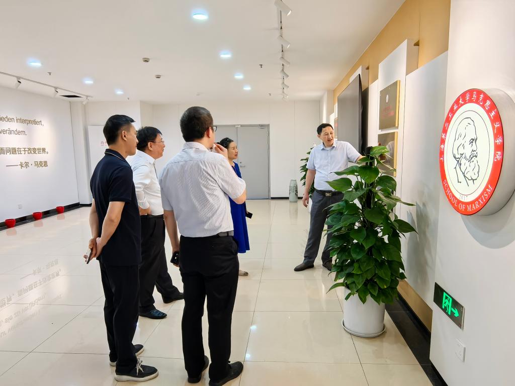 在上海第二工业大学百家乐论坛 ,王永章院长就上海第二工业大学百家乐论坛 基本情况、教育教学改革、科研与学科建设、硕士学位点建设、百家乐论坛 治理和文化建设等工作特色与亮点等方面进行了介绍,特别是对近年来该院在教学科研“攻坚提质计划”方面取得的成绩以及品牌建设等进行了深入交流。刘文书记重点就劳模文化育人特色做法和成效等情况进行了详细介绍。双方就思政课实践育人改革、师资队伍建设、学科特色凝练等进行了深入交流。百家乐论坛 一行还实地参观了该校上海劳模百家乐论坛 暨“首批全国科学家精神教育基地”(包起帆创新之路展示馆)深入了解其“场景感知+具身体验+价值生成”的“大思政课”实践育人教学改革模式,并参观了该院的文化长廊建设与办公环境建设。