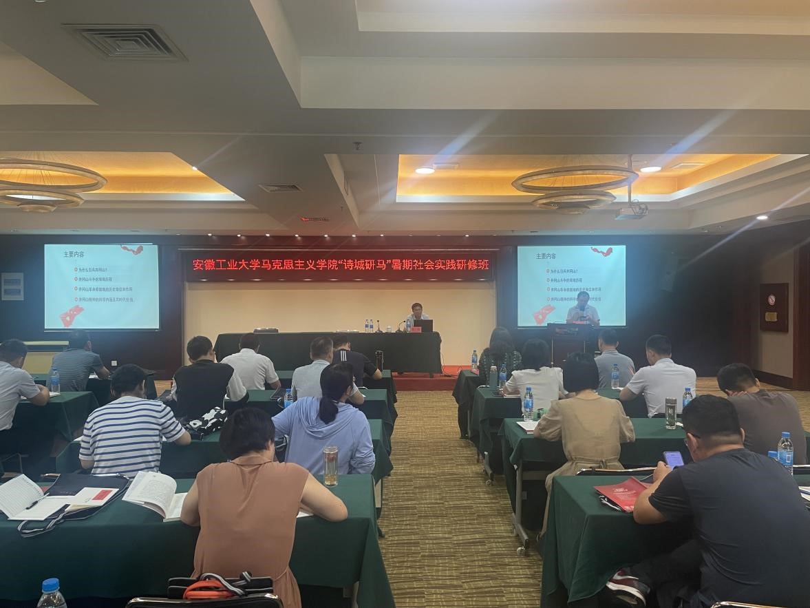 “诗城研马”暑期社会实践研修班在中共井冈山市委红色教育基地正式开班。基地张贵民副主任致欢迎词并授班旗。徐惠作开班仪式动员讲话。全体学员面对班旗庄严宣誓。