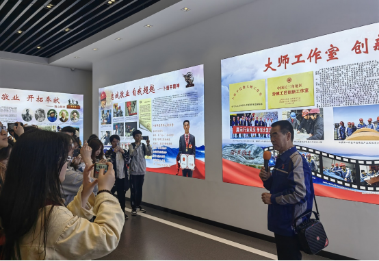 在工匠基地,卜维平带领大家参观了采用3D打印新技术建成的工作室和展示馆,向大家简要介绍了南山矿的发展劳模工作室建立等情况,并对工作室的团队建设和主要成果等作了详细讲解。在现场授课中,卜维平分享了自己从普通电铲车司机到高级技师、全国技能大师的成长经历,阐释了勤学苦练、持之以恒、不断创新的重要性。现场师生被矿山工人严谨专注的劳动热情和精益求精的劳动态度所折服。