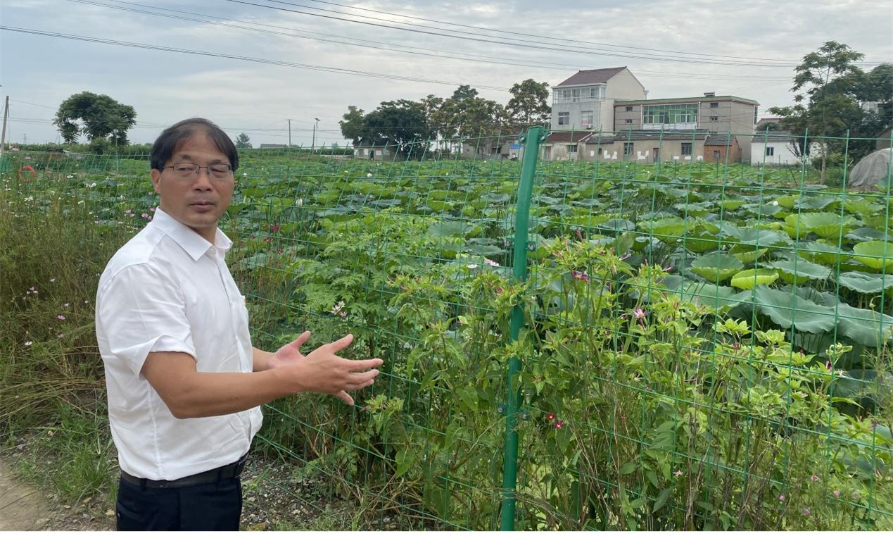 随后,实践队队员来到兴圩村。位于马鞍山和县西南部的兴圩村,三面环河,南有太阳河,北有得胜河,西有八字河,地理位置优越,自然环境优美。在兴圩村驻村书记郭道江的带领下,实践队来到兴圩村黑木耳种植基地、藕塘种植基地、芦笋种植基地等村集体产业项目现场。郭道江向大家详细介绍了兴圩村产业发展从无到有的历程、产业在发展过程中遇到的困难及克服方法、产业发展取得的成效。通过产业基地的参观,队员们深刻地感受到产业振兴是从“输血”到“造血”功能推进的新动力,不仅能带来更多的收入和就业,也为振兴乡村注入了新的活力。在参观产业基地后,团队成员分别对百峰村的书记齐道江、团委刘文进行了采访。在采访的过程中,团队了解到乡村振兴工作离不开党和国家的指导、离不开党组织作用的发挥、离不开村委干部带头作用的发挥,组织振兴是乡村振兴的“第一工程”,是构建现代化乡村体系的基石。新时代青年要自觉用习近平新时代中国特色社会主义思想武装头脑,为实现乡村组织振兴注入澎湃动能。