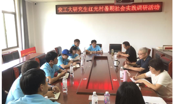校友企业援建的瓜蒌基地污水处理项目。在实地调研中,实践队不仅了解了红光村瓜蒌籽、黄花菜产业的发展情况、种植技术、产品功效及市场销售情况;也近距离感受了现代技术在助力乡村产业高质量发展中的突出作用。实地调研结束后,实践队与驻村工作队进行了座谈交流。胡卫东向大家介绍了红光村的产业发展、乡村治理、发展前景等情况,并谈到红光村的发展也离不开社会各界人才的支持与帮助,各行各业的人才帮扶为红光村的振兴提供了源头活水和动力引擎。座谈结束后,队员们结合本次实践调研计划与驻村工作队及村干部进行了一对一访谈交流。在调研和访谈过程中,队员们看到了产业、技术、人才在乡村振兴过程中发挥的重要作用,纷纷表示要学好专业知识和现代科学技术,为乡村振兴贡献青春力量。