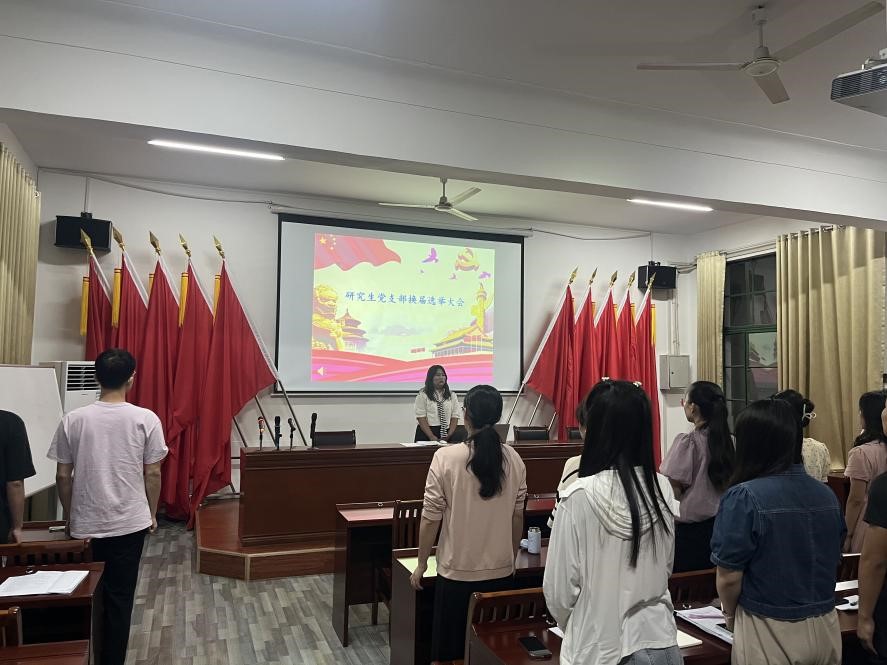 换届选举大会在庄严的国歌声中拉开了序幕,大会首先由支部副书记彭菊萍代表上一届研究生党支部委员会向大会做支部工作报告,总结了三年来研究生党支部在制度建设、组织建设、支部规范化建设等方面的情况。大会审议通过了选举办法和监票人、计票人名单,按照工作程序,与会党员以无记名投票方式,选举产生了由苗云飞、徐飞、管明雪、汪琴、戴倩倩组成的新一届研究生党支部委员会。