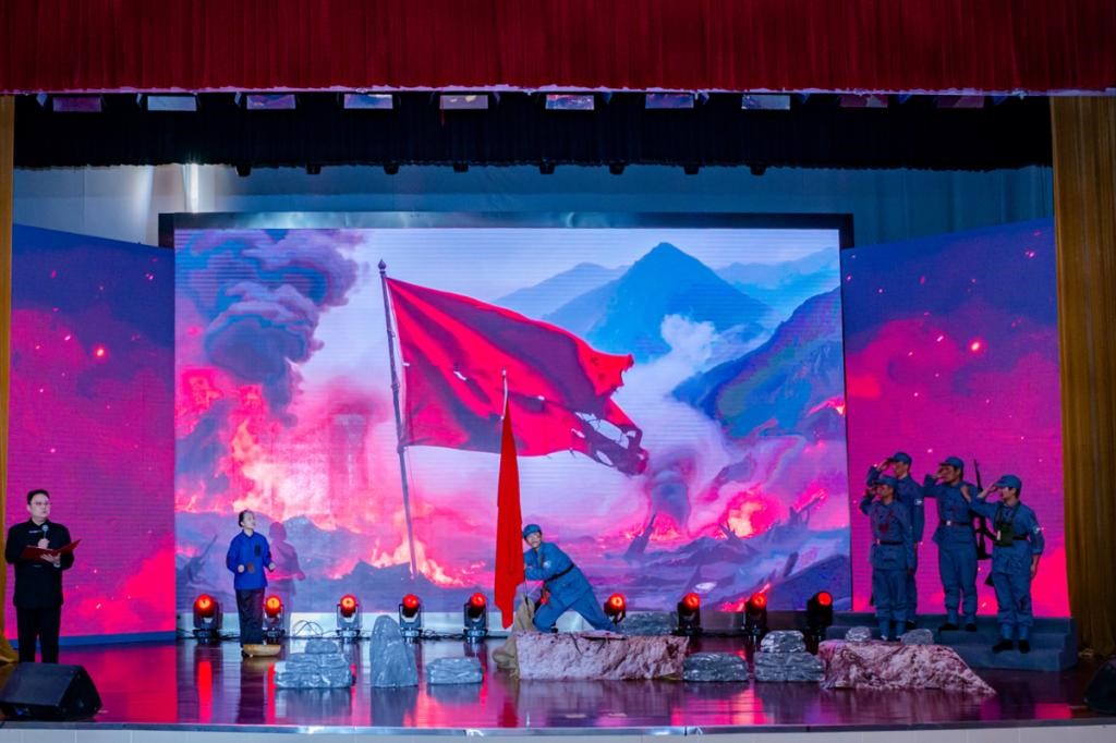 的大力协助支持,是探索“大思政课”创新路径的生动实践。演出以“自编自演、师生同台”的实践教学模式,让师生深度参与史料搜集、剧本创作、角色演绎全过程,在史实考证中深化党史军史学习,在历史情境还原中增进对马克思主义中国化时代化成果的理论认知,在英雄角色塑造中激发爱国情感共鸣。这种沉浸式、体验式的思政教育形式,有效破解了传统思政教育中理论灌输的瓶颈,实现了从知识传授到价值引领、从思想启迪到信念塑造的深度升华,显著提升了思政教育的感染力、吸引力和实效性,为全校“大思政课”建设提供了可复制、可推广的宝贵经验。