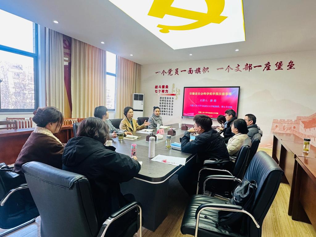 博士生导师唐莉教授做了题为“安徽省社会科学奖申报注意事项”的辅导报告,对申报省社科奖的老师进行现场指导,申报教师、科研骨干及青年教师参加,会议由郑洁院长主持。