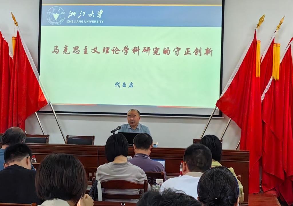 副院长代玉启教授以“马克思主义理论学科研究的守正创新”为主题作学术讲座。讲座由副院长宫晓虹主持,全院师生参加。