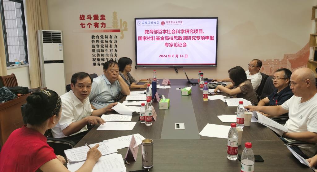在324会议室召开2024年度教育部哲学社会科学研究项目和国家社科基金高校思政课研究专项申报专家论证会。会议邀请了扬州大学教授、博士生导师周建超和合肥工业大学教授、博士生导师黄志斌作为评审专家,院长郑洁,副院长宫晓虹及部分项目申报人参会,会议由宫晓虹主持。