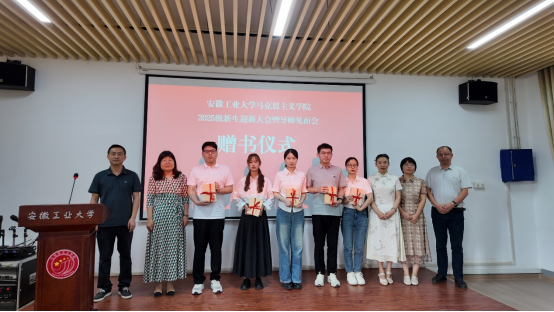 党委副书记、纪委书记、副院长林忠心、副院长宫晓虹、副院长倪松根分别为五名新生代表赠送《习近平著作选读》。
