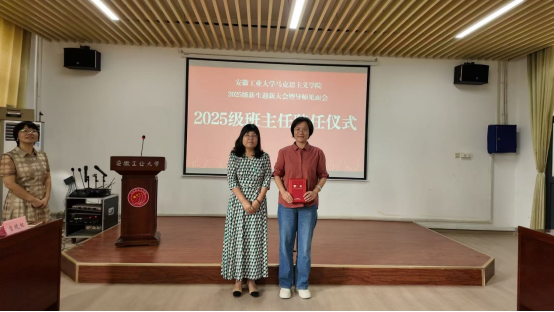 党委书记徐惠为2025级班主任庄新霞老师颁发聘书。