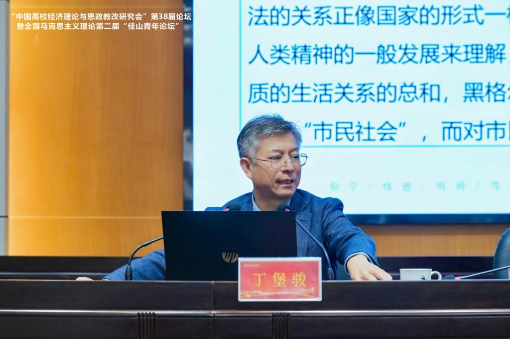 教授丁堡骏,以“《资本论》方法论与构建中国特色社会主义政治经济学体系”为题,分别从《资本论》及其方法论意义、揭示的政治经济学理论精髓以及对构建中国特色社会主义政治经济学的当代价值三个方面进行深入阐述。